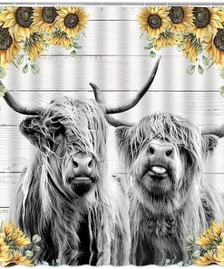 Rustic Highland Cow Sunflower Shower Curtain for Country Bathroom Decor