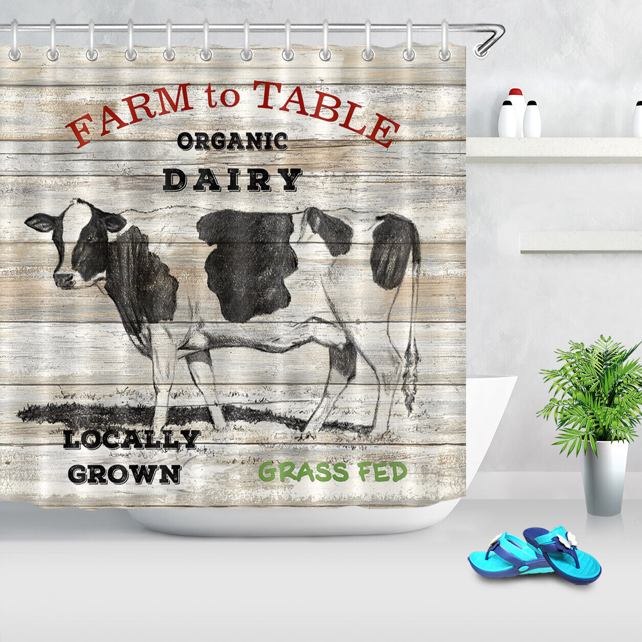 Rustic Wood Plank Cow Farm Animals Shower Curtain, Waterproof Fabric for Bathroom Decor