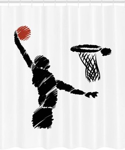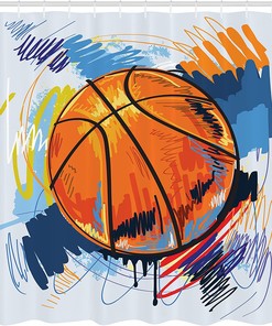 Stylish Hand Painting Basketball Print Shower Curtain for Bathroom Decor