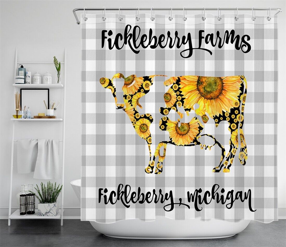 Sunflower Shower Curtain with Cow Print for a Farmhouse Bathroom