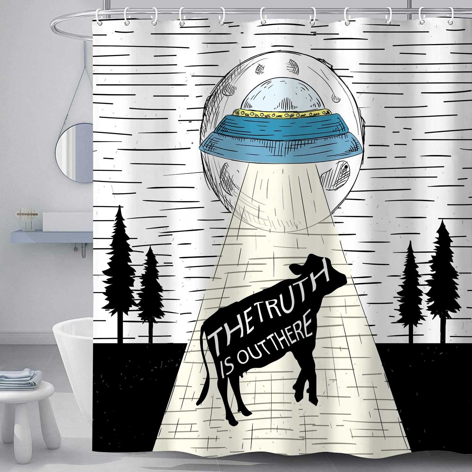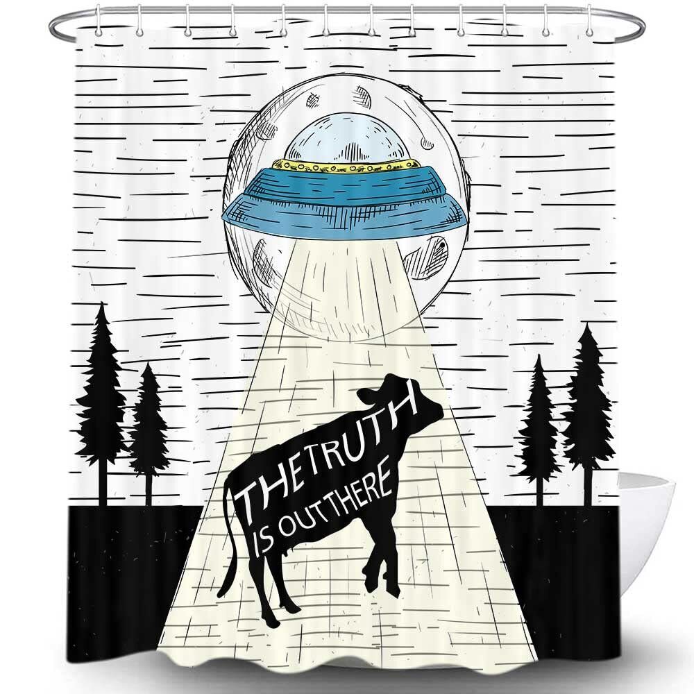 UFO Cow Print Fabric Shower Curtain Home Decor