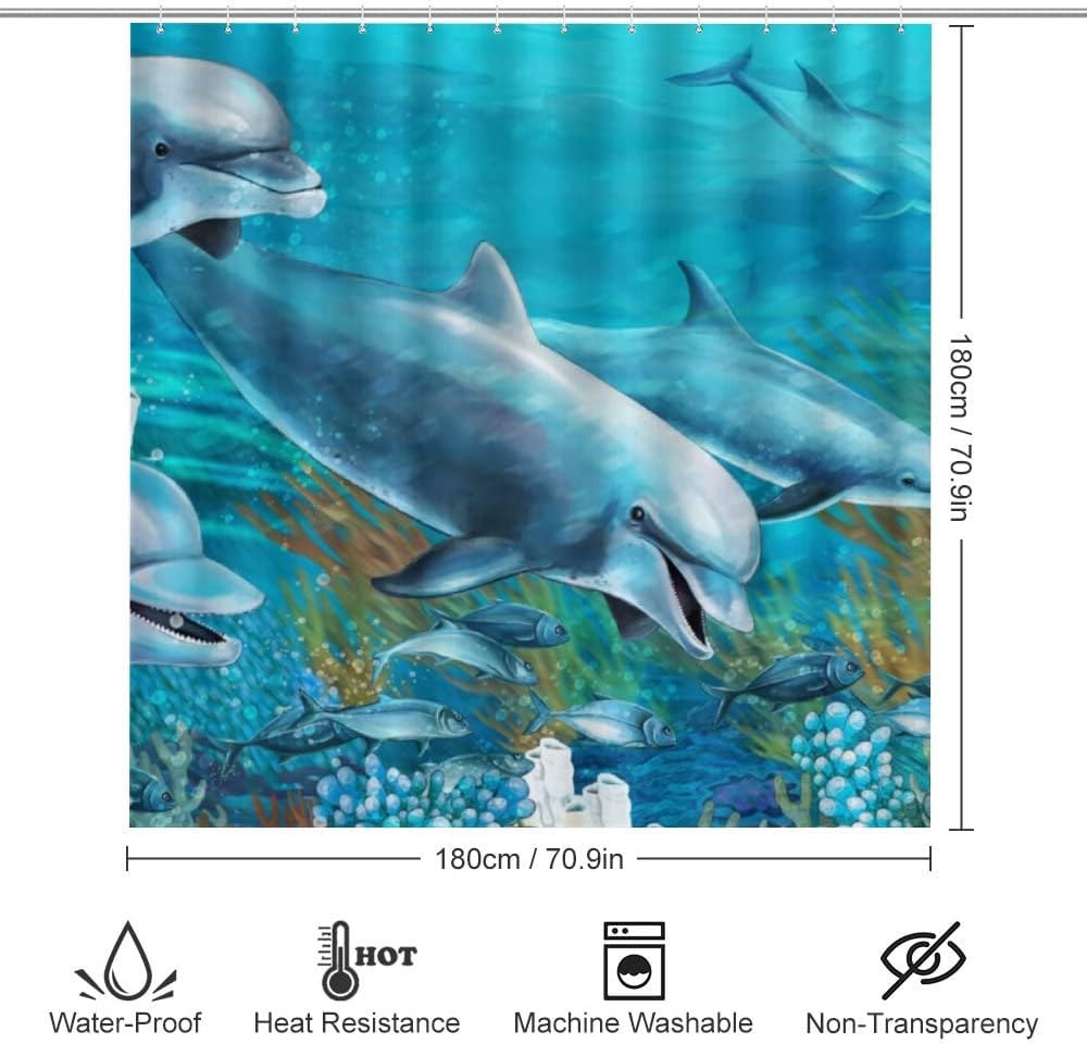 Undersea Dolphin Shower Curtain for Bathroom, Home Decor
