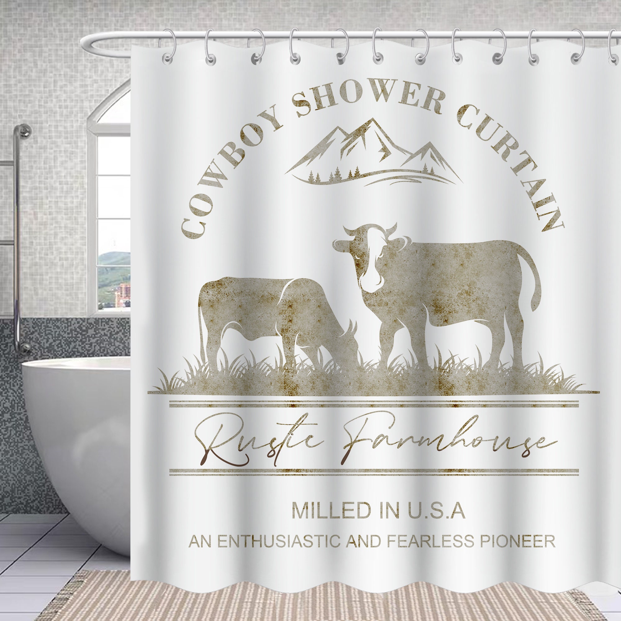 Western Cowboy Hay Shower Curtain, American Country Theme Bathroom Decor