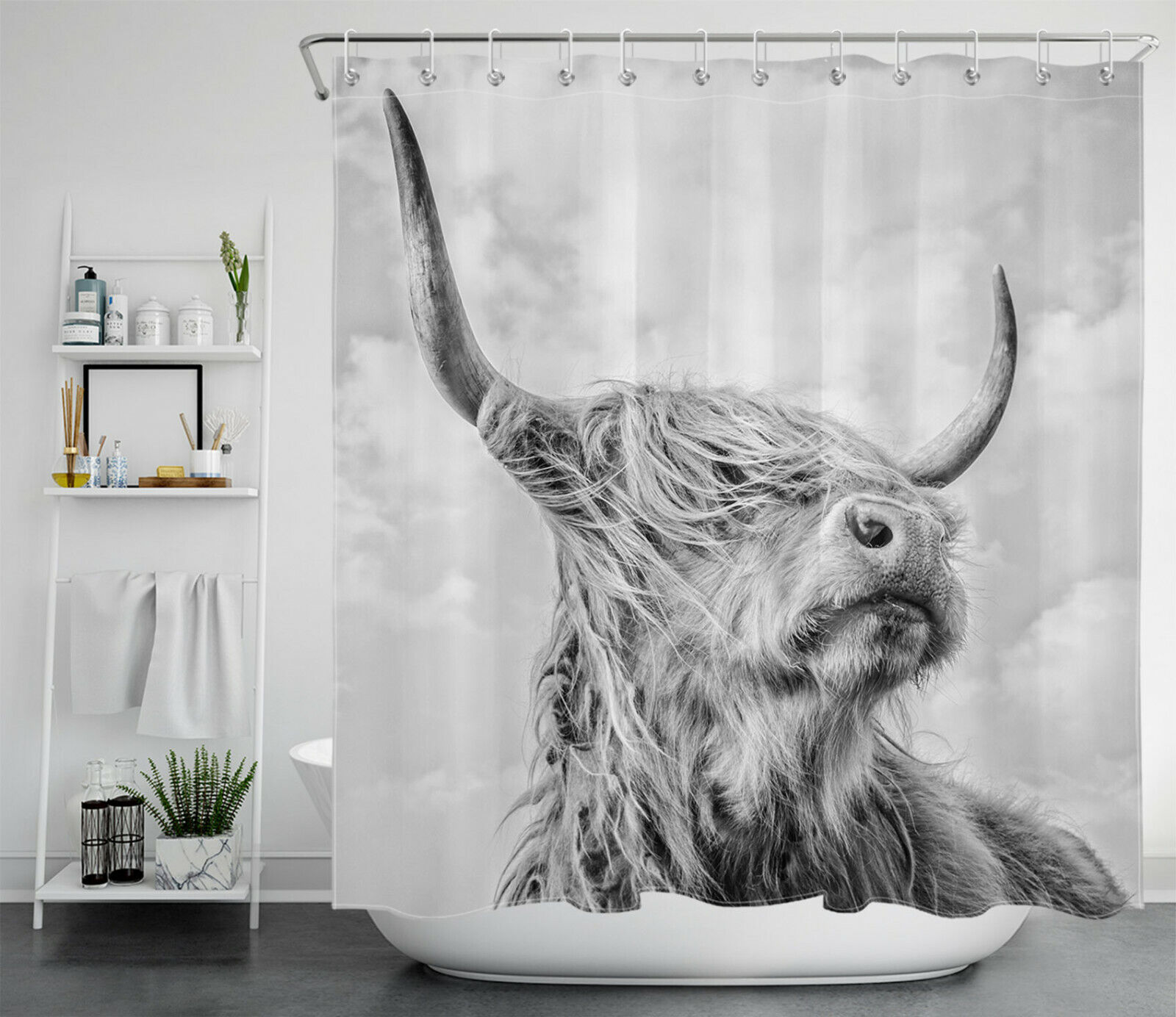 Western Wildlife Animal Bathroom Accessory, Highland Cow Bull Shower Curtain