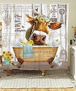Farm Cow Shower Curtain by DESIHOM for Rustic Bathroom Decor