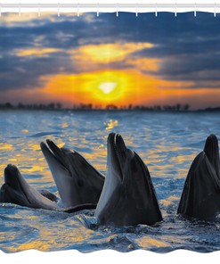 Dolphins Dusk Print Animal Print Shower Curtain for Bathroom