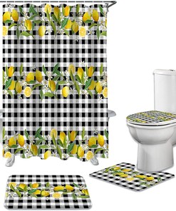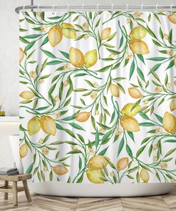 Lemon Shower Curtain Yellow Fruits Watercolor Bathroom Decor